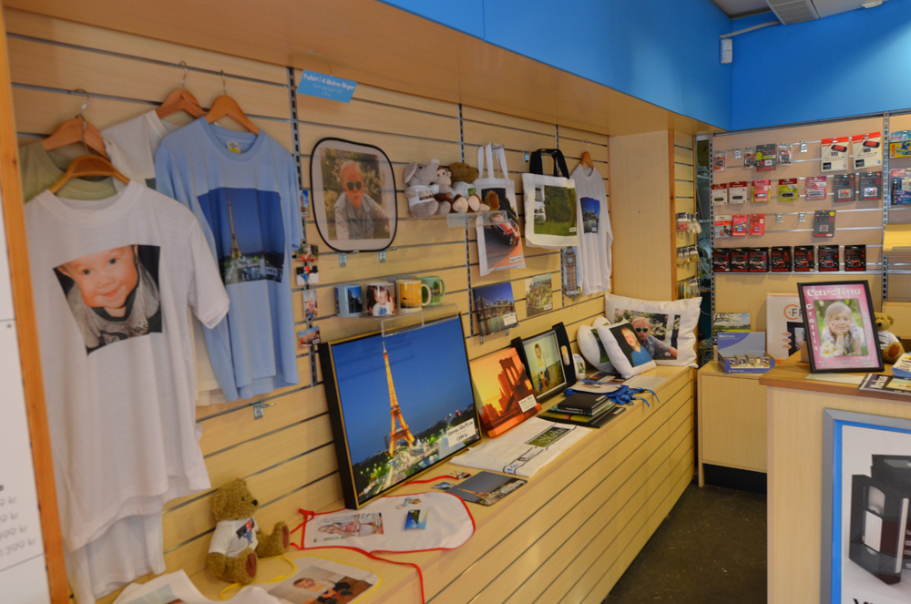 Säljer profilprodukter både lokalt men även via sin e-butik. I lokalerna hade dom ett stort utbud med profilkläder för att visa upp för den lokala marknaden